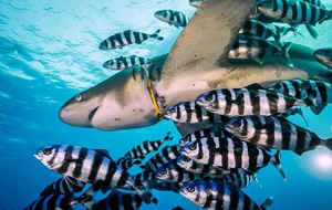 潛水員JacekDybowski來到兄弟島附近的紅海海域潛游,發(fā)現(xiàn)了令人心痛的一幕,這頭白鰭鯊的脖子上套著一個(gè)塑料環(huán),塑料的邊緣嵌進(jìn)它的肉里,勒出了了一道深深的傷痕,看上去十分痛苦。